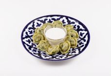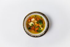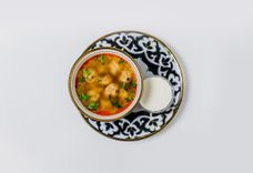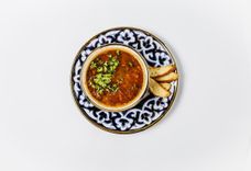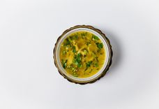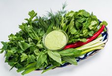 125 г • Ароматная кинза, базилик, укроп, зеленый лук и петрушка. К блюду подается соус Цахтоне и перчик чили.