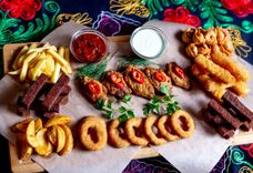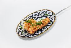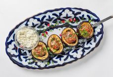 170 г • Кольца баклажана с начинкой из измельченной баранины, сладкого перца, чеснока и двух видов сыра, обжаренные на мангале. Подаются с соусом Тар-тар.